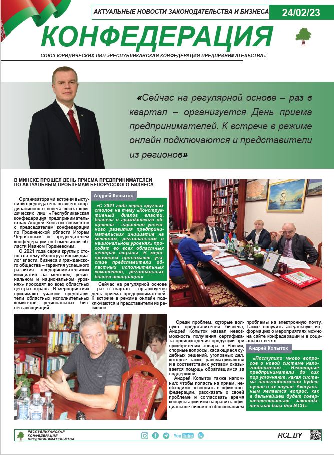 Новости белорусского бизнес-сообщества от руководителя Республиканской конфедерации предпринимательства Андрея Копытка