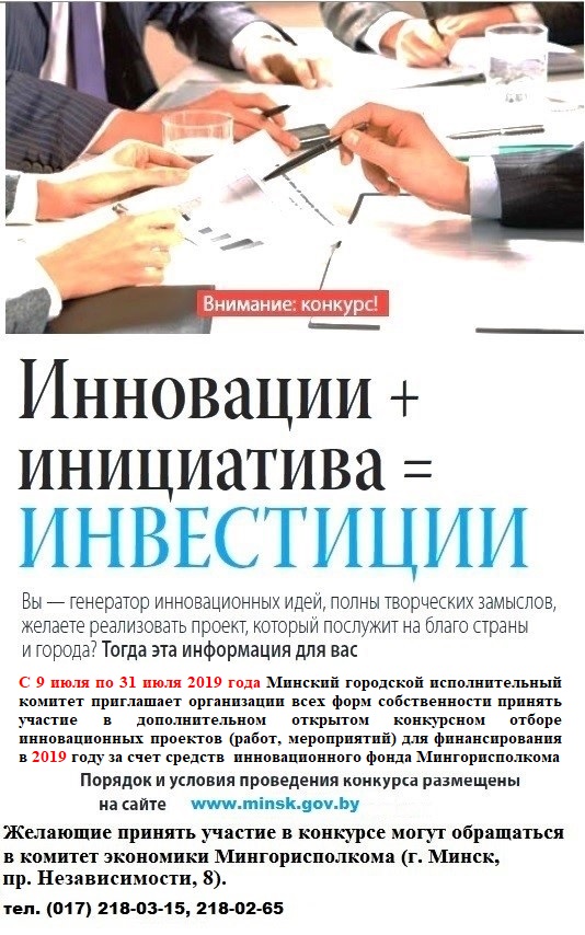 КОНКУРС проектов для финансирования из инновационного фонда Мингорисполкома в 2020 году